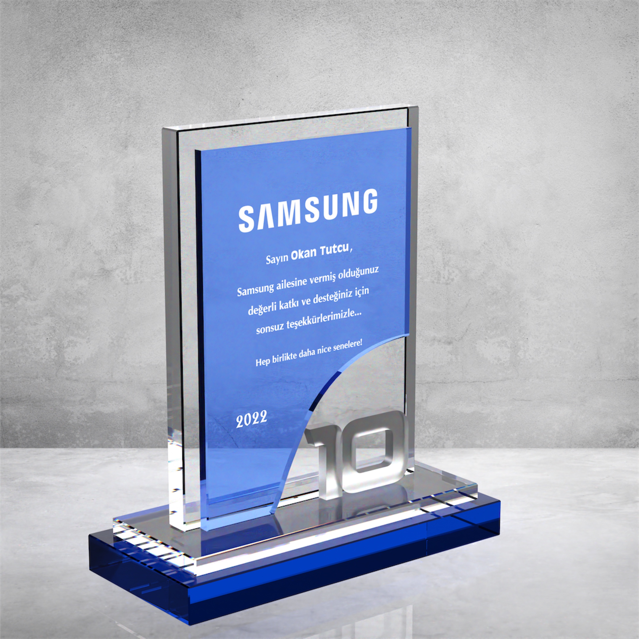Antalya’nın en ihtişamlı organizasyonları ve devasa projelerinin başarısını taçlandırmak için tasarlanan Mavi Camlı Kristal Plaket, kütlesel ağırlığı ve geniş formuyla bir ödülün ötesinde, kristal bir anıt niteliğindedir. 20 mm (2 cm) ekstrem cam kalınlığı ve 20 cm genişliğiyle, başarının sarsılmaz gücünü temsil eden en hacimli VIP modelimizdir.